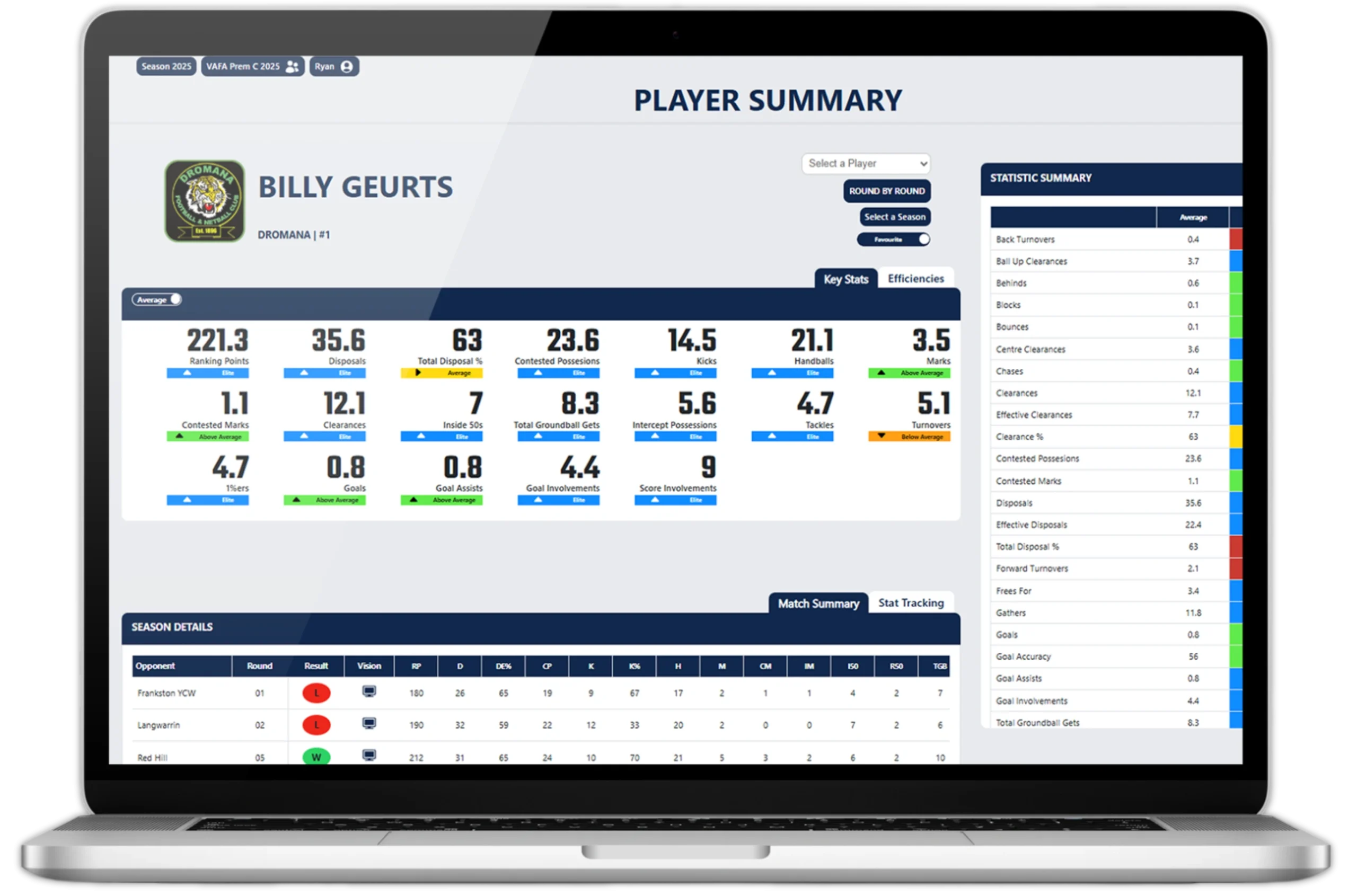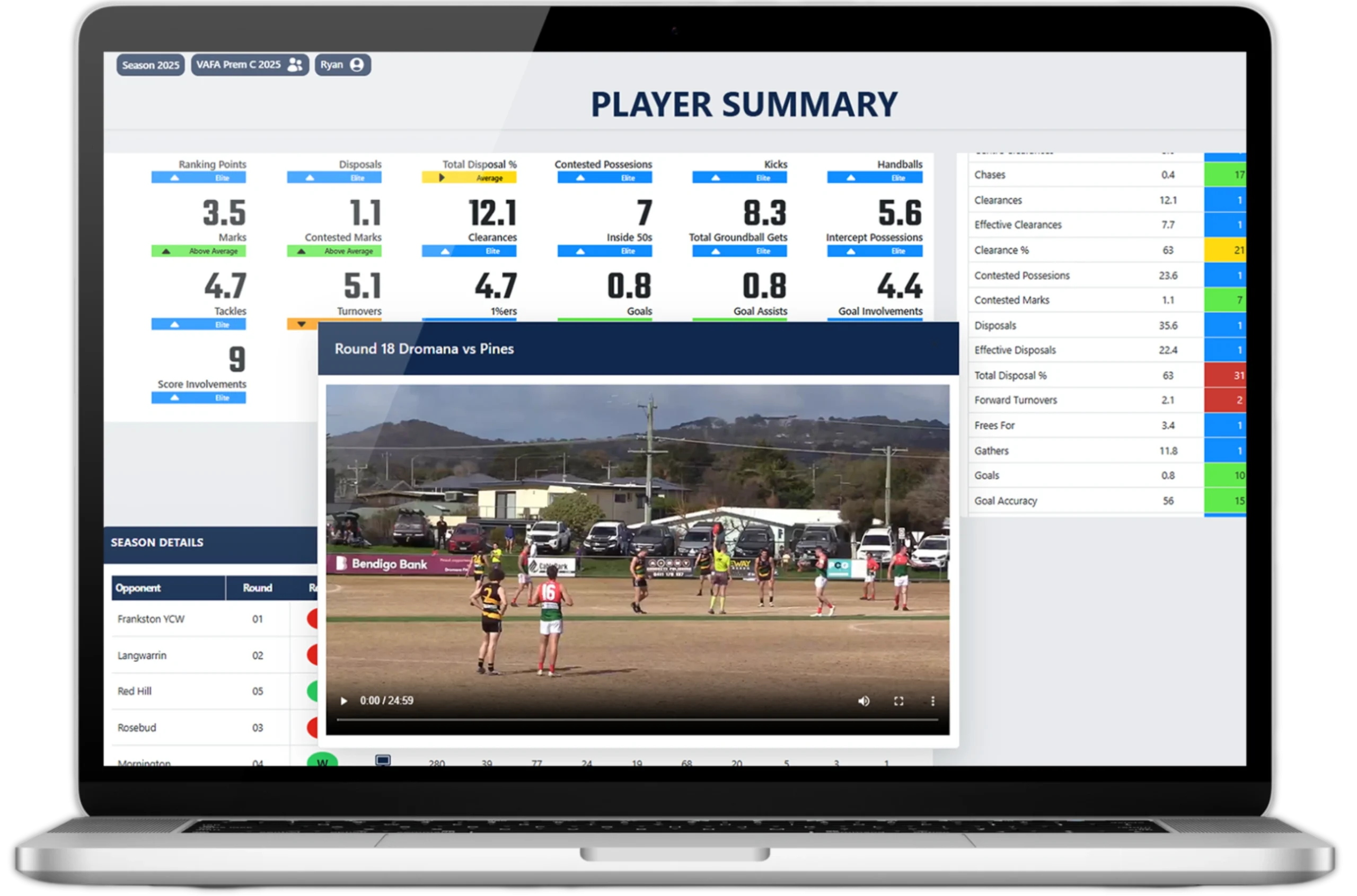Our platform offers unmatched access to Australian Rules data, vision, and analytics across community and elite levels. With over 400 clubs, 27+ leagues, and more than 22,000 players, we deliver the most extensive and trusted AFL performance database in the market.