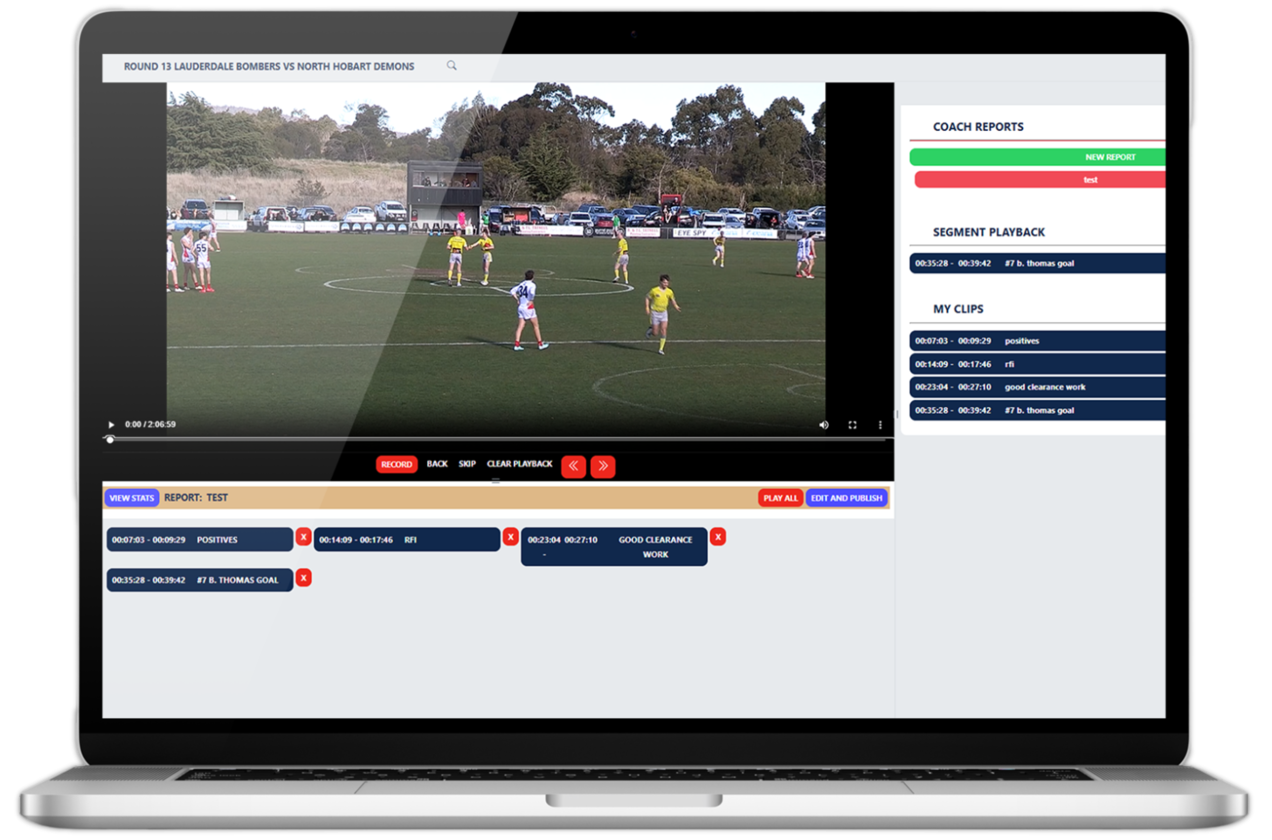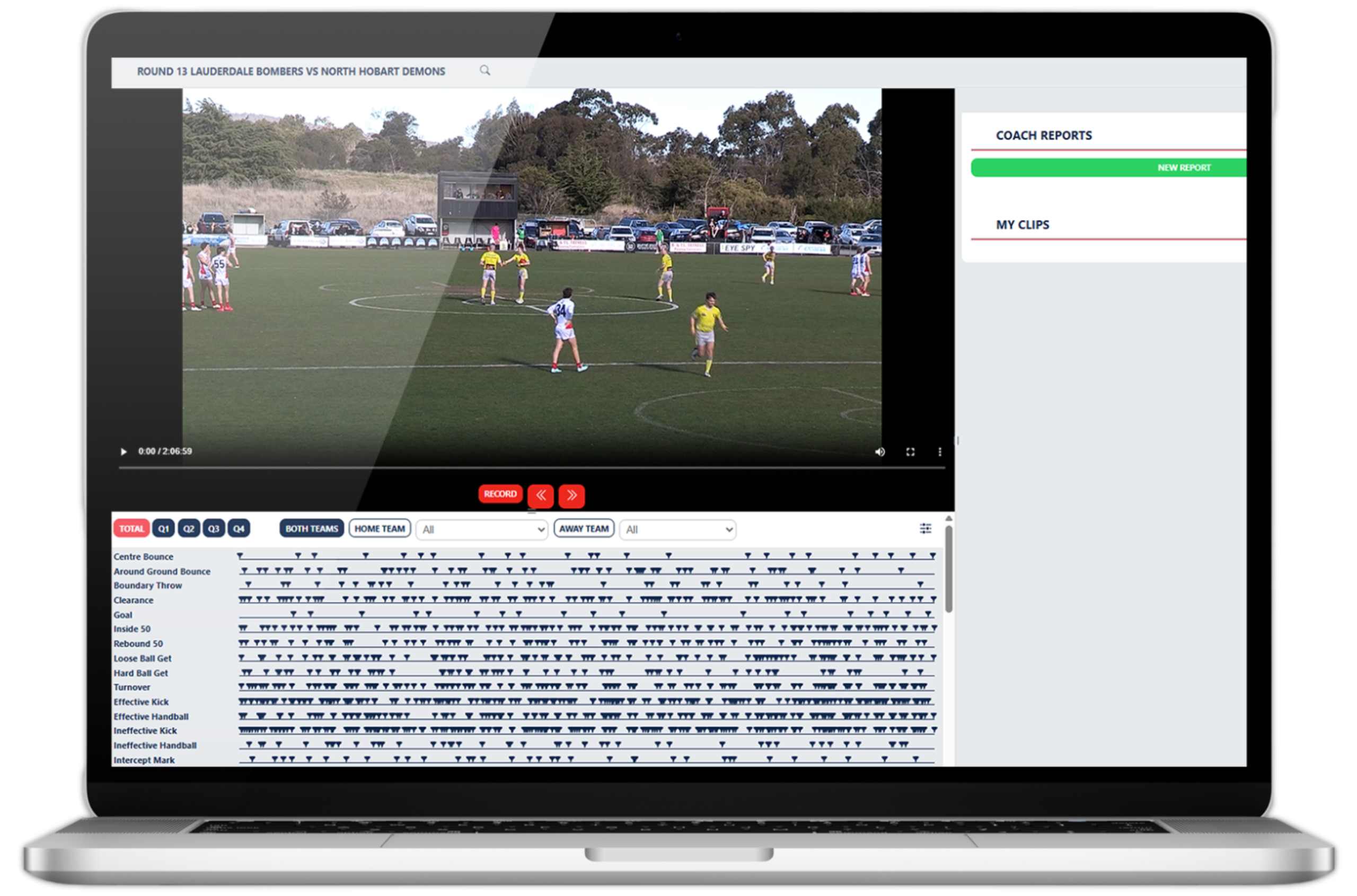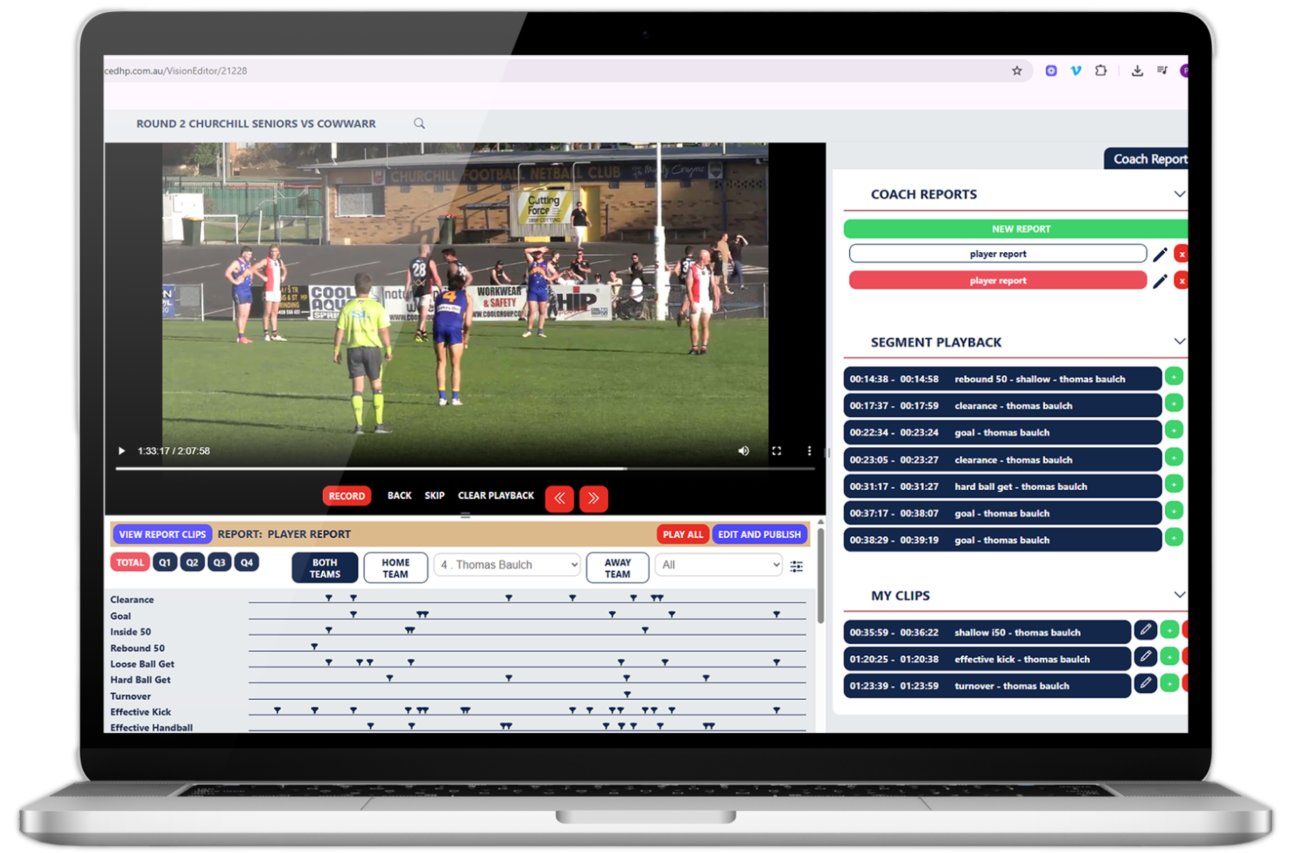 Easily view and edit complete game footage. Trim, tag, and organise vision to suit your analysis needs—before, during, or after the game.