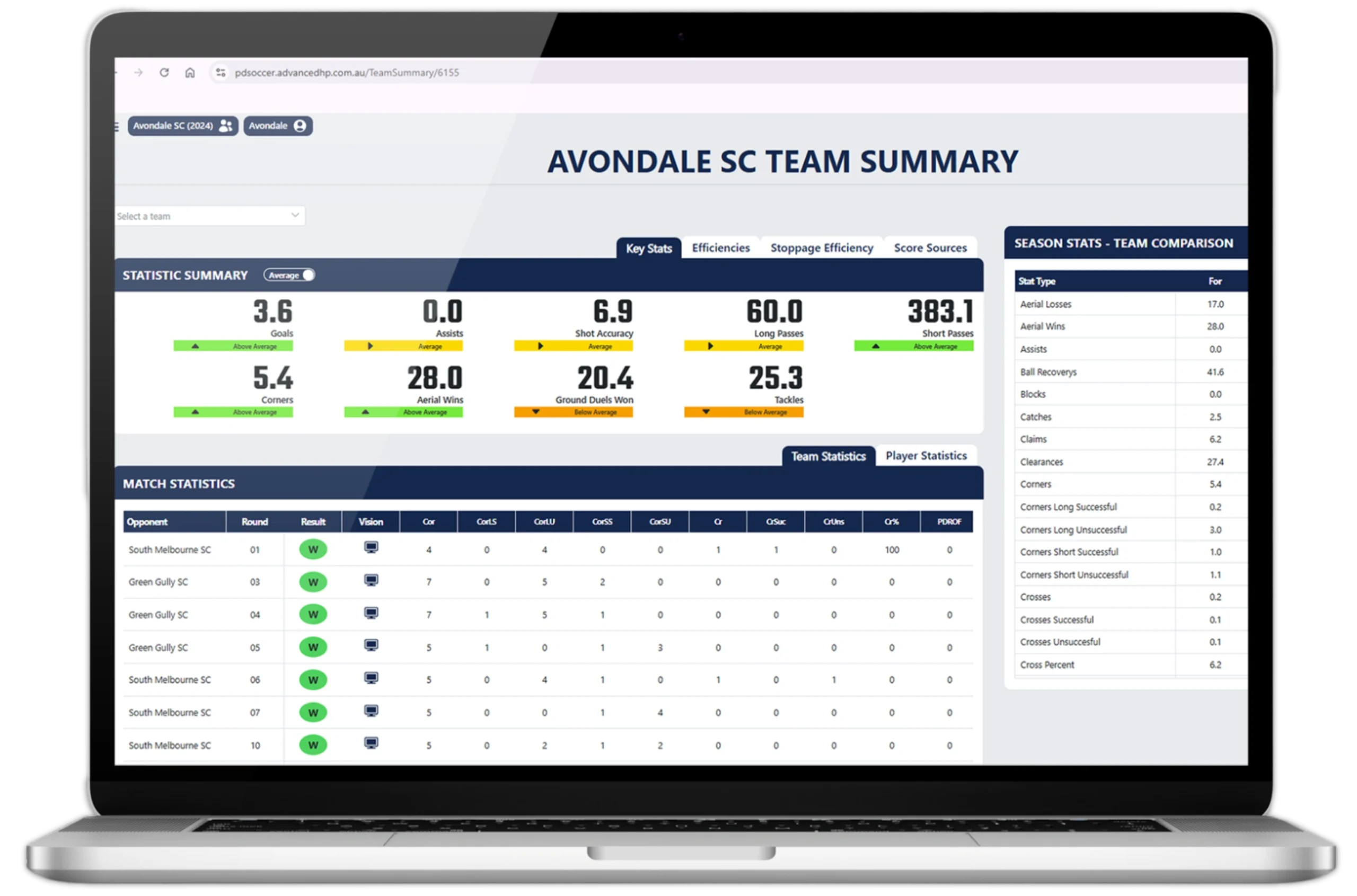 Access complete match data with ease. From overall team performance to individual player contributions, get a full view of the metrics that matter—broken down by halves, key intervals, and across the entire season.